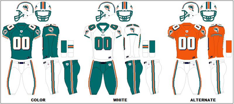 2019 Miami Dolphins Results. It was a white short-sleeved dress with chest and sleeve number patches in orange and blue-trimmed aqua colors. The official Miami Dolphins team colors are aqua orange blue and white.